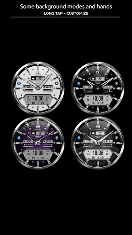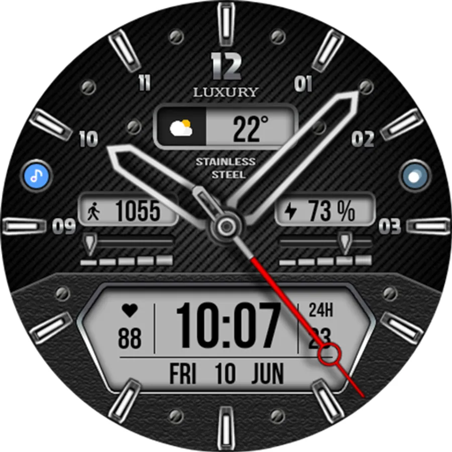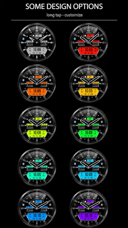 - Changeable colors of the second hand or turn it off;