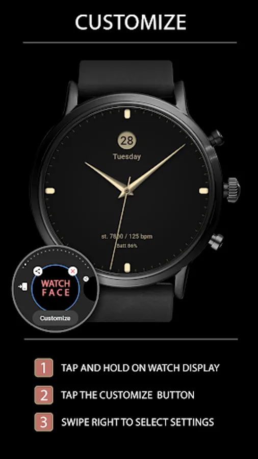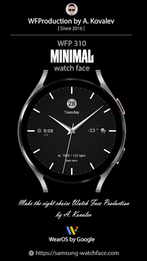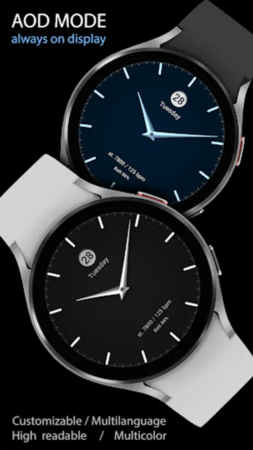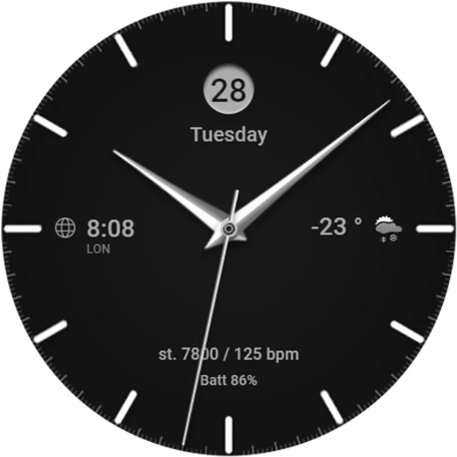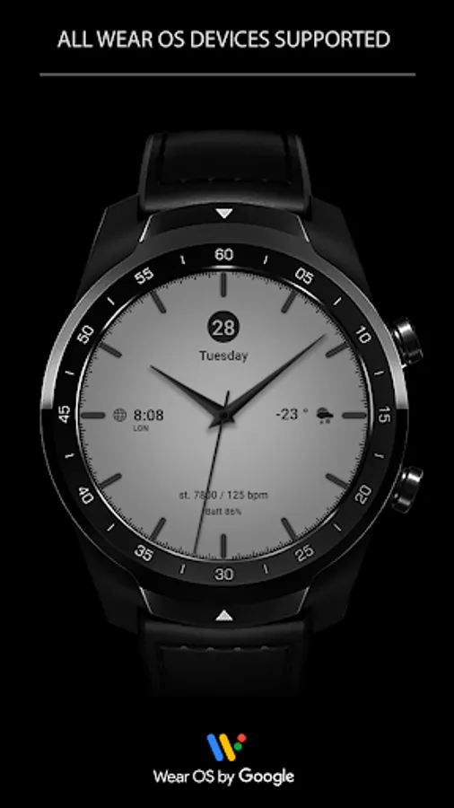 This watch face supports Wear OS devices with API Level 28+.