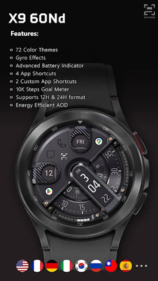 Wear OS 2.0 (API Level 28) or higher. Please contact support@x9studio.com if your supported device is not recognized by Google Play.