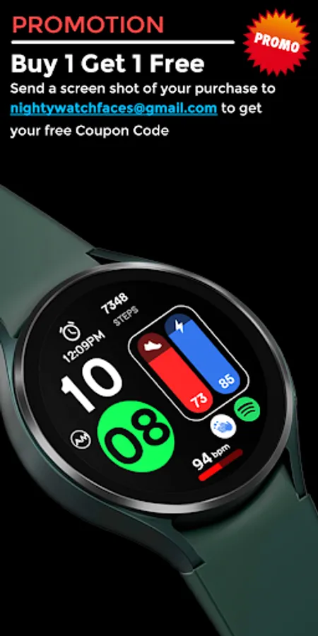 Send a screenshot of your purchase to nightywatchfaces@gmail.com to get your free promo code