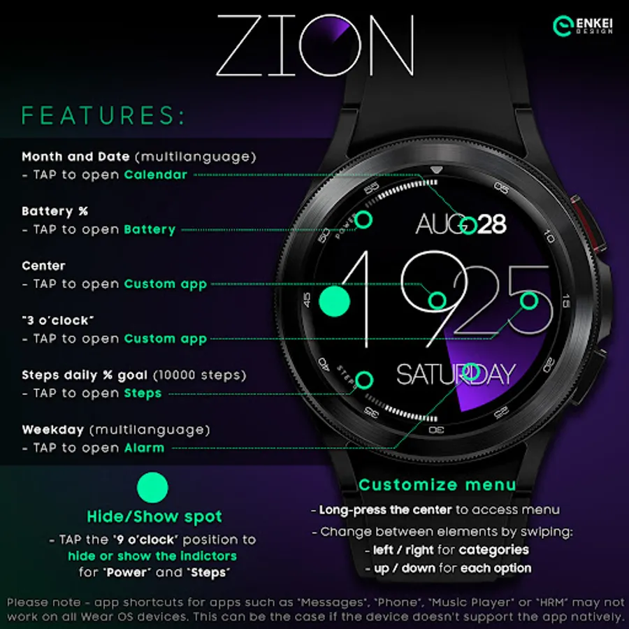 ZION is also available in Samsung Galaxy Store, for Samsung smartwatches running Tizen OS :