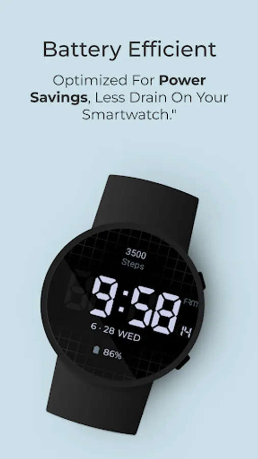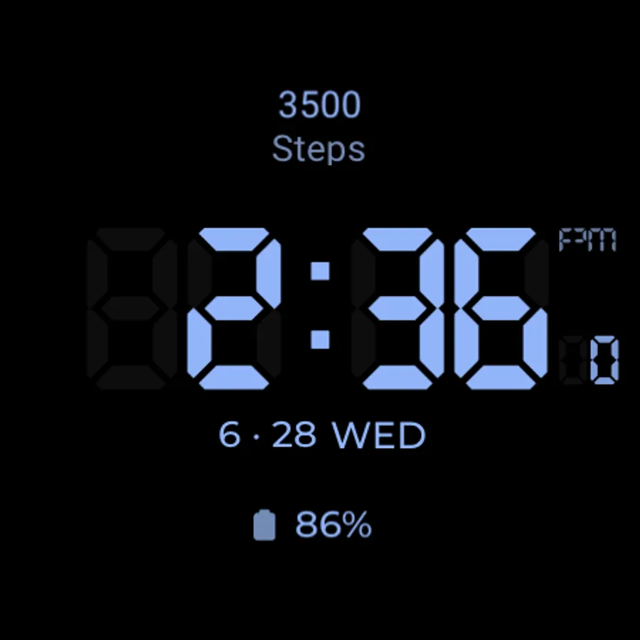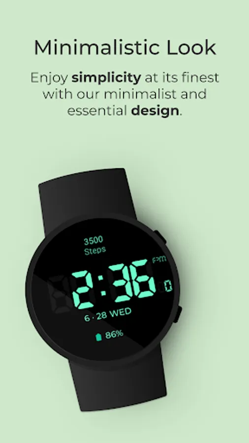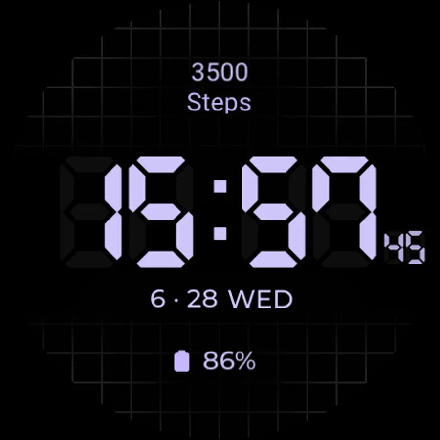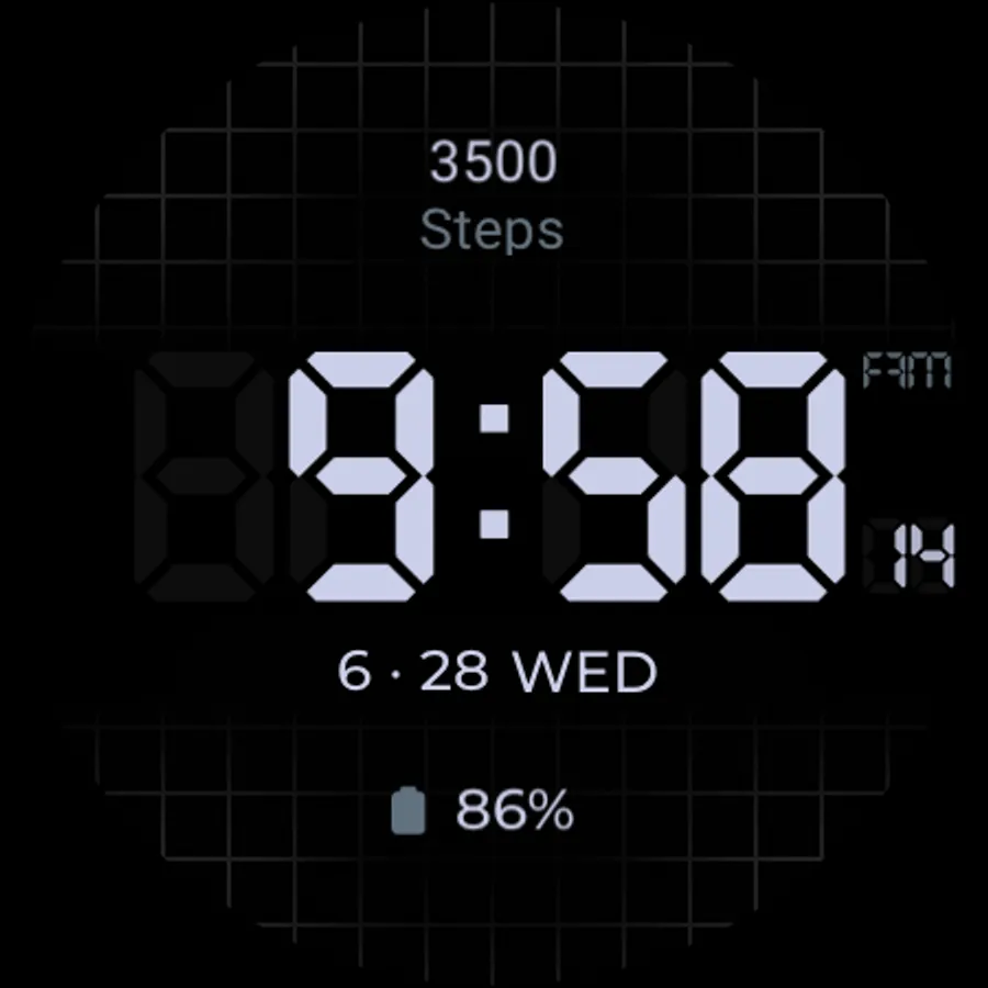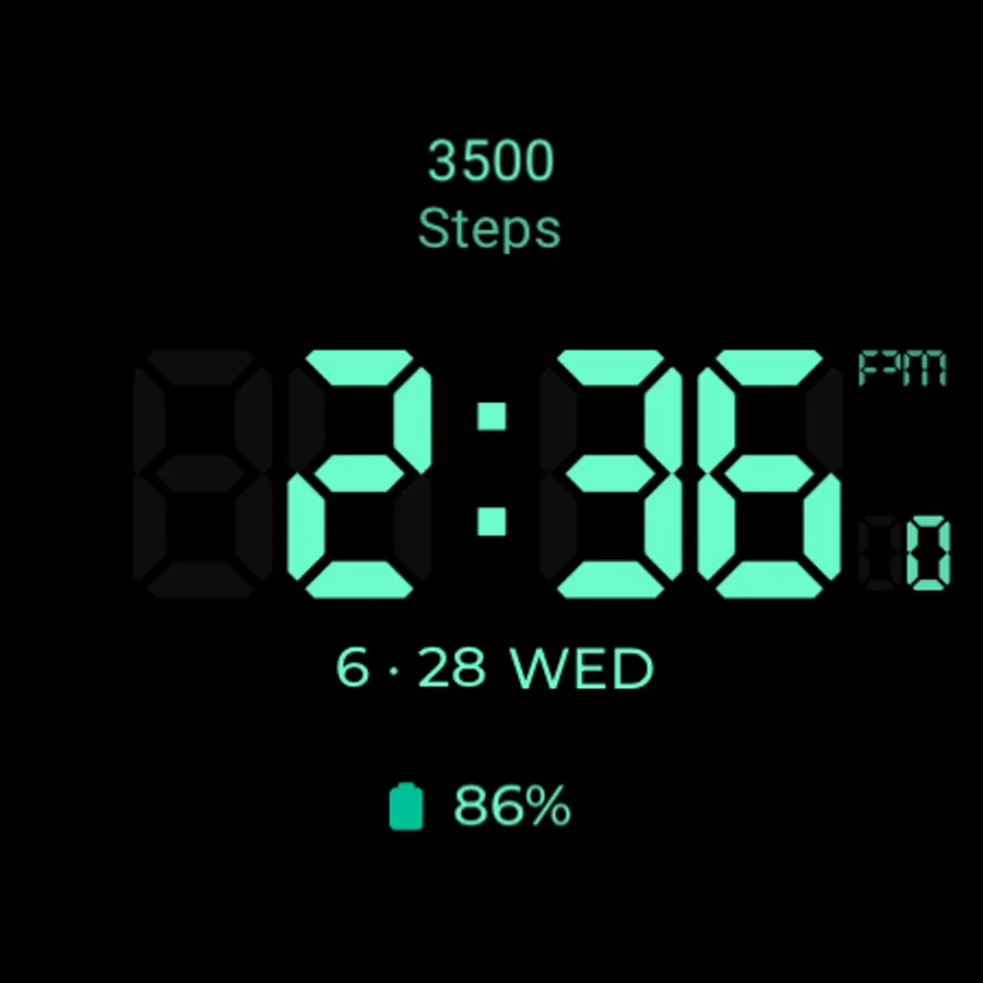 Meet Essential One, your new go-to watch face. Think of your favorite digital clock - that's the vibe we're going for, but way cooler. Essential One looks great on OLED displays, with bold, clear numbers that are easy to read, day or night. We've also added a step counter and battery life indicator to keep you in the know. Want to switch things up? You can swap these out with other features you like. And don't worry, we didn't forget the date - it's right there on the display. Essential One: simple, functional, and totally you.