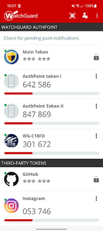 The AuthPoint app features: