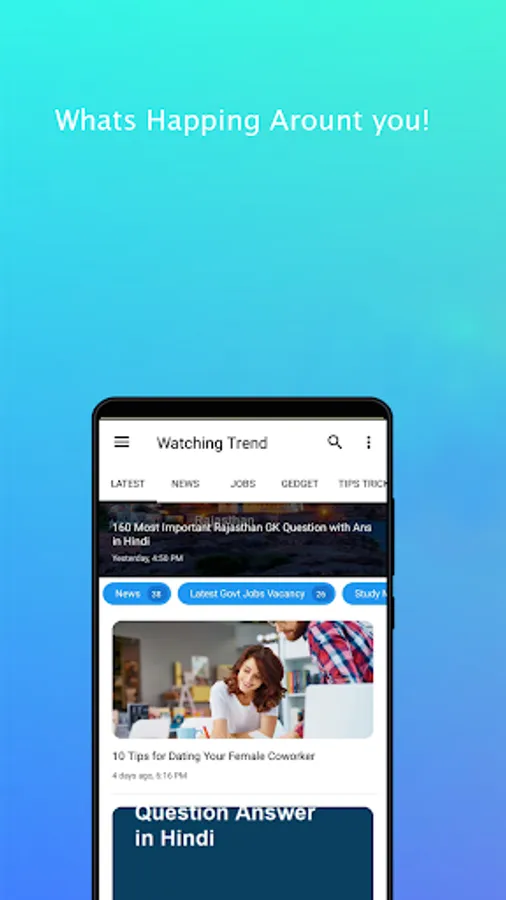 Watching Trend App provides latest news what's happening around you. App has many categories to browse article from where you can also contribute.