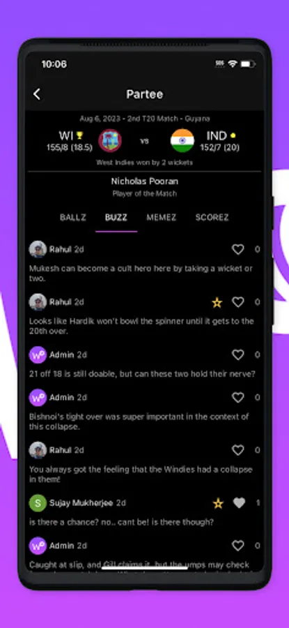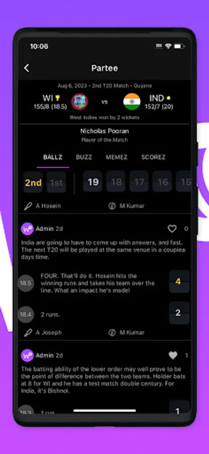 Follow along with live scores, banter with other fans and express yourself with memes. Join the Partee!