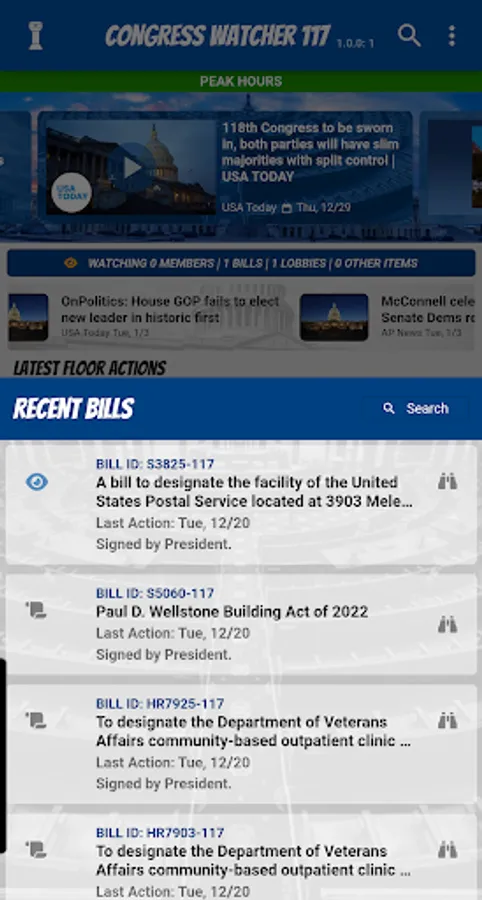 • Keep an eye on elected officials and votes on bills currently active on the Senate and House floor.