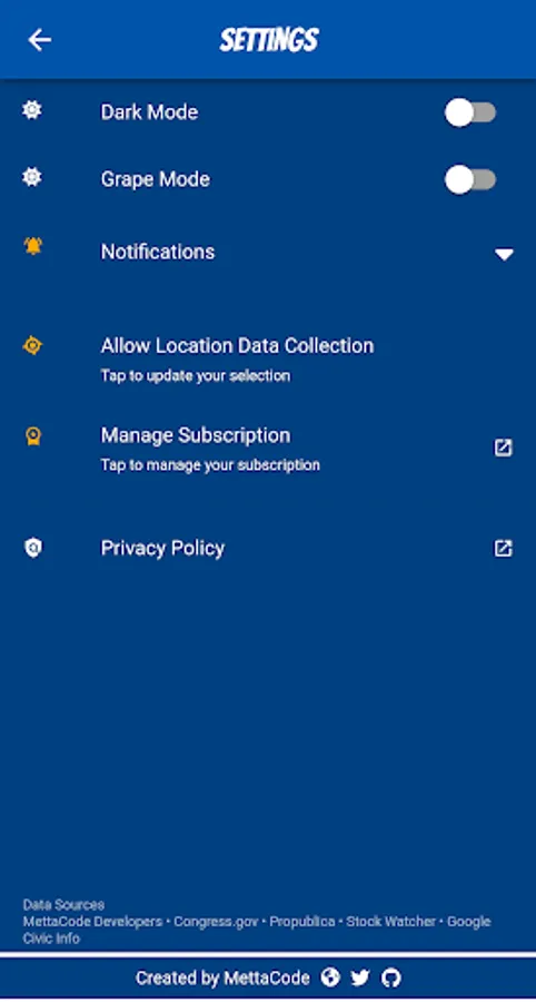 NOTE: this app is not associated with the US Congress and is published by a private entity located in the USA. Congressional data is retrieved and aggregated from the official website of www.congress.gov directly and through www.propublica.org Congress APIs.