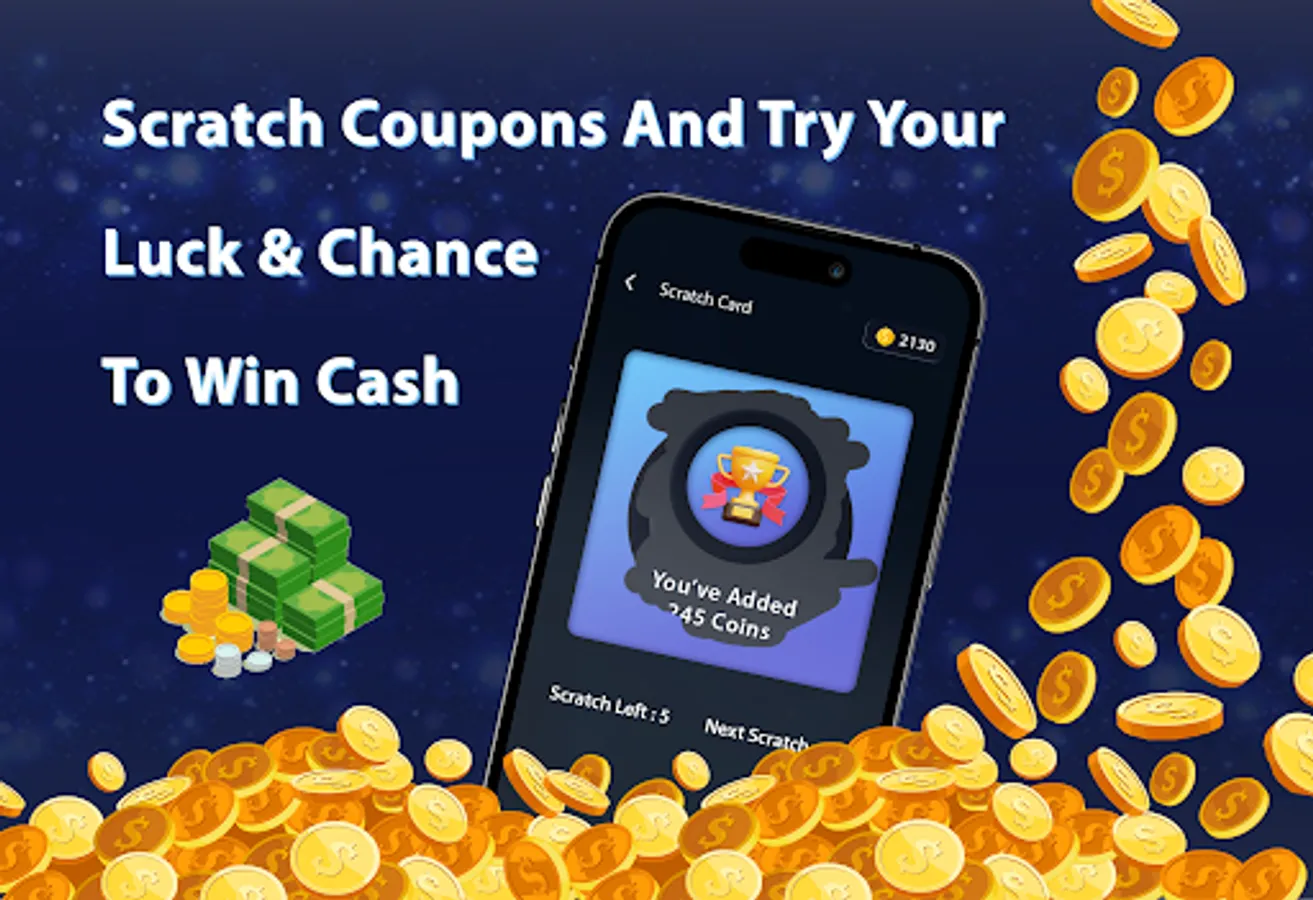 scratch to win cash - earn money now try your luck and open your scratch cards.