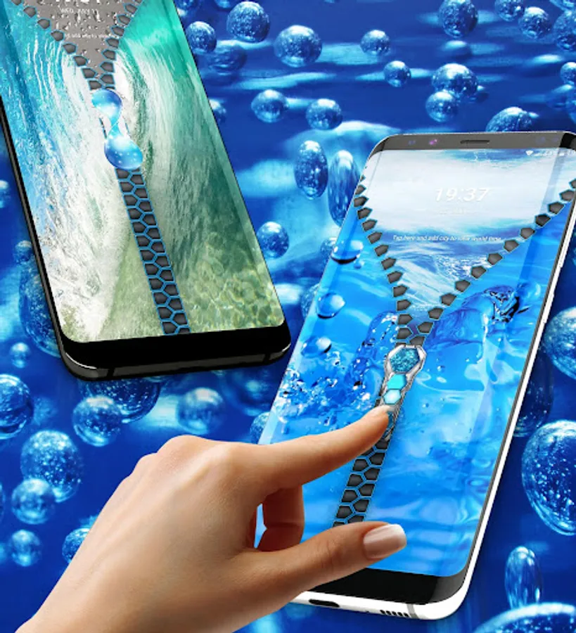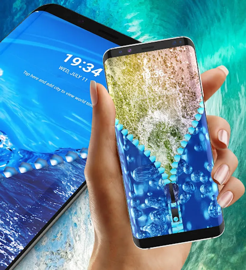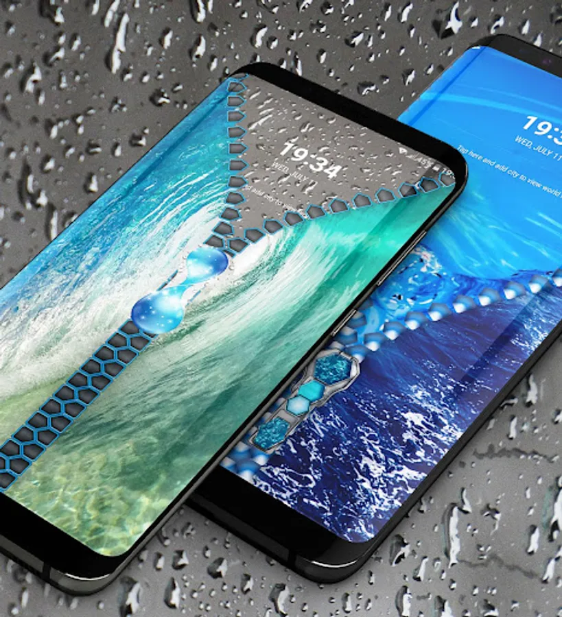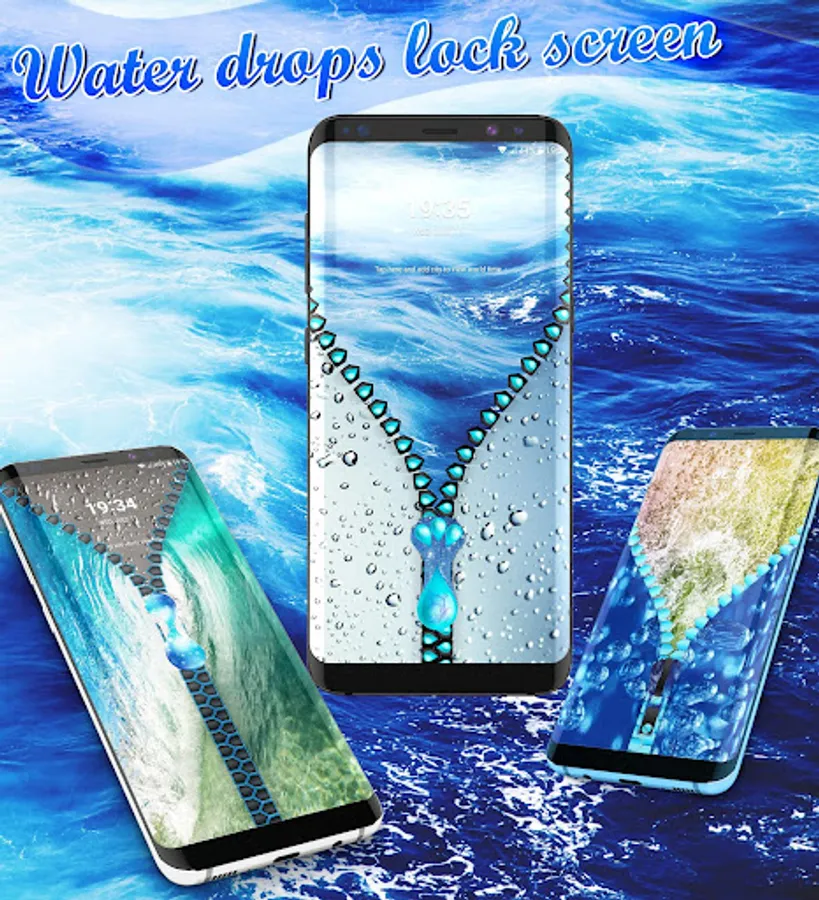 Would you like to unlock your phone in a really unique and customizable way? With our new Water drops lock screen, you have the option to choose your own wallpaper for the locker screen and for your device background. Also change the zipper style, color, and design with just a simple click until you find the best combination that works for you.