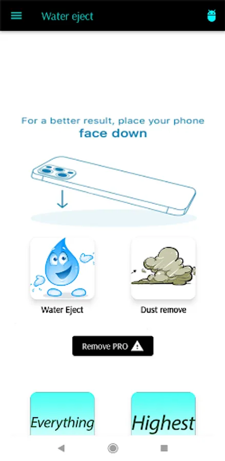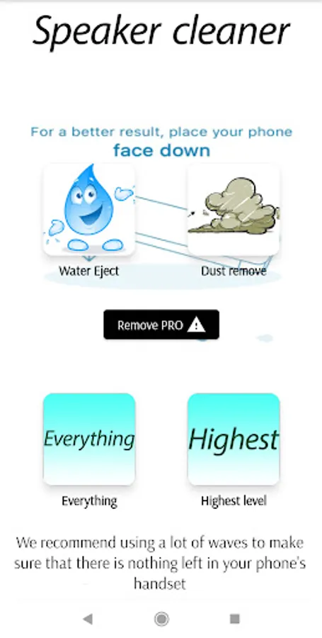 The Clear Wave app remove water from both speakers on your Phone by playing ultra low, high frequency sound.