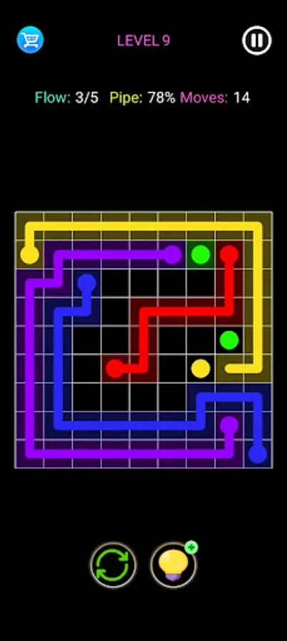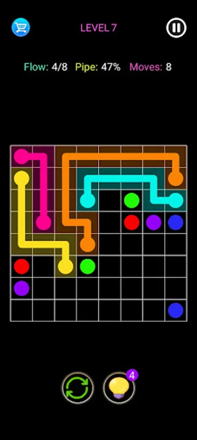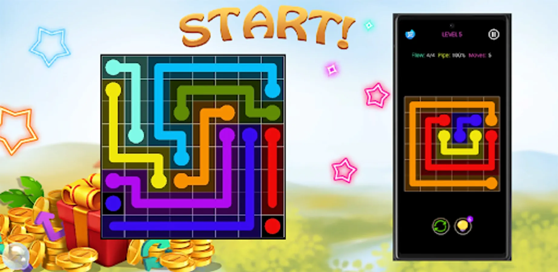 In Dot Link, please match the colors of all dots so that the pipe covers the entire area to successfully pass the level. Please note that all levels are challenging!