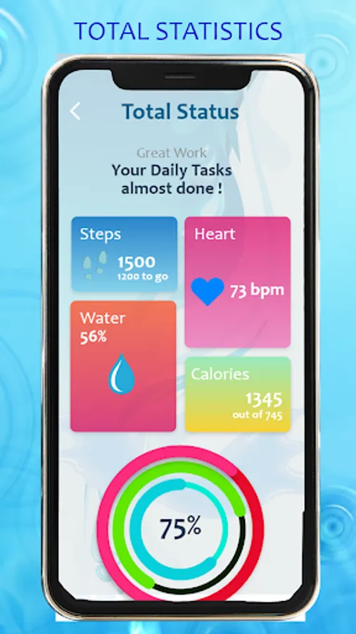 Keep updated daily on your water intake and step count. Recommendation on nutritional food.