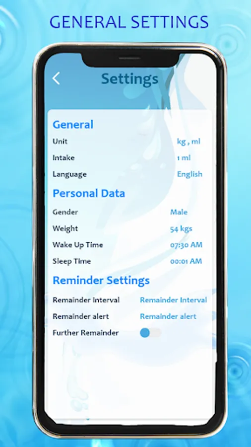 Individuals who screen well-being realize that keeping up the body's water balance, you need to drink water day by day. Please make use of this most helpful water reminder application to follow your day by day water intake. The standard intake of water of an individual is determined based on an individual's age, body weight, loads and ecological conditions. Our water reminder application figures your daily water intake, allows and reminds you to drink water each day in frequent intervals until you arrive at your daily water intake goal.
