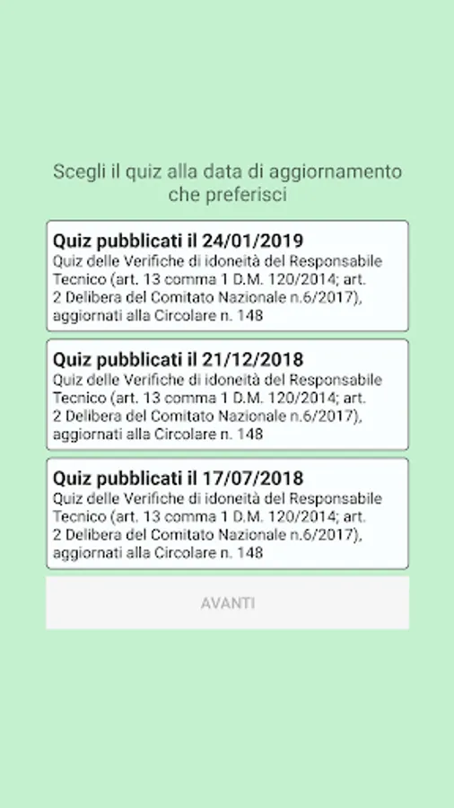 Practice with the quizzes of the checks for the suitability of the technical managers provided for by article 13 paragraph 1 of the D.M. 120/2014, divided into the modules referred to in Annex C of the Resolution of the National Committee n.6 available in the updates: