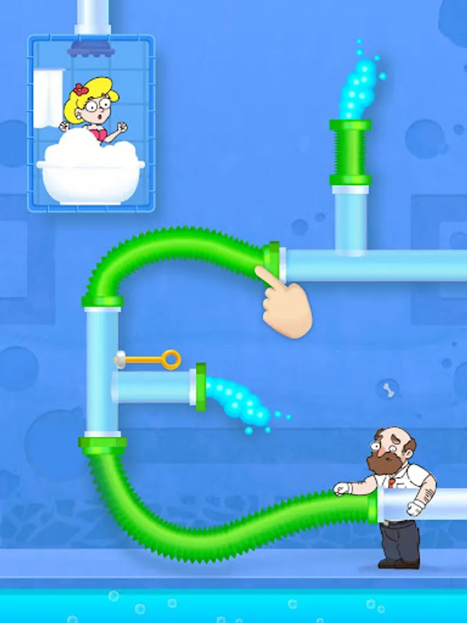 As a skilled plumber, you need to use your brain and combine your patience, brain power and spatial logic skills, to follow the correct steps to pull out the stick and help the girl avoid the obstacles in the pipe and connect the pipes!