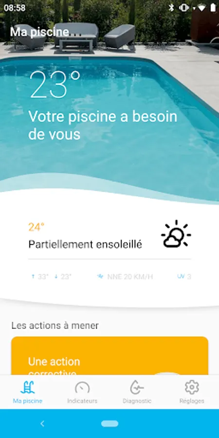 The connected analyzer continuously controls your settings (pH, chlorine and temperature) and communicates them to you via the app on your smartphone.