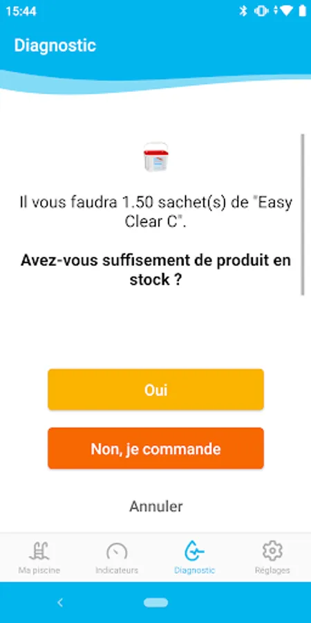 - Have a personalized analysis based on your pool model and equipment, your maintenance habits and your treatment method. Indeed, the system is linked to your customer account and allows you to have a custom prescription.