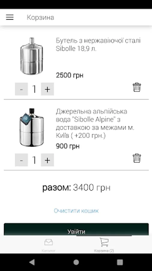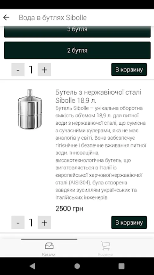 Мобільний додаток призначений для зручного замовлення доставки води в бутлях 18,9 л з нержавіючої сталі Sibolle і всієї лінійки супутніх товарів і аксесуарів Sibolle.