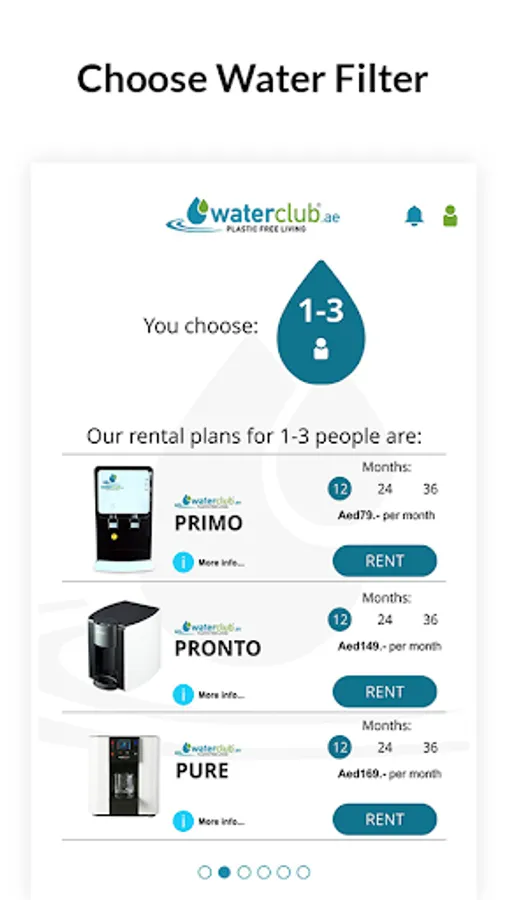 We introduce Waterclub filter app for Android and iOS. At Waterclub, we allow users to rent a water filter on a monthly basis. We give you unlimited filtered and purified water either boiling hot or perfectly chilled instantly.