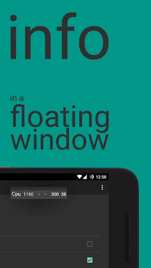 CpuFloat is a compact system tool with minimal permissions; vibrate, read sdcard, draw over other apps. There are no ads and it doesn´t use internet data.