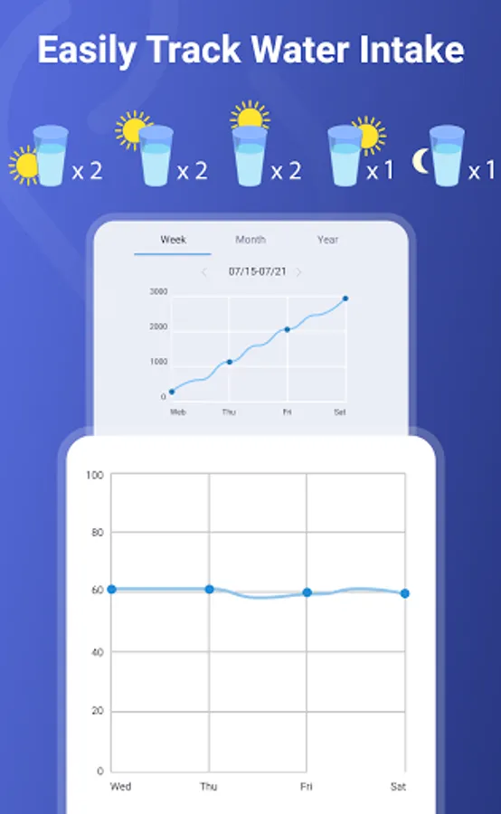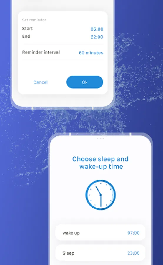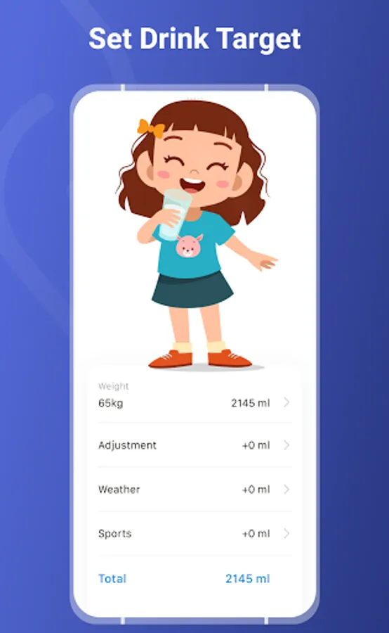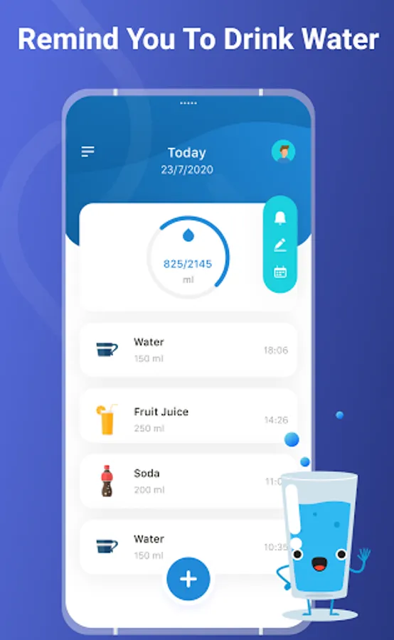 You can set a time for the app to remind you to drink water every day, and every 30 minutes, 60 minutes you'll need to refill a glass of water or the amount of water to make up for a long day of activity.