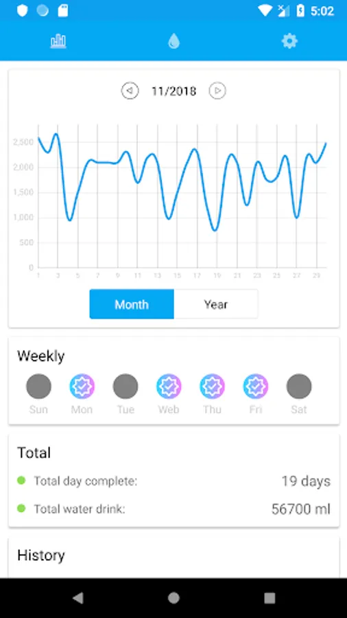 With a clean interface, the drink water app not only tracks water intake, but also checks your progress toward your goal. Moreover, Drink Reminder app lets you know what your intake should be anytime!
