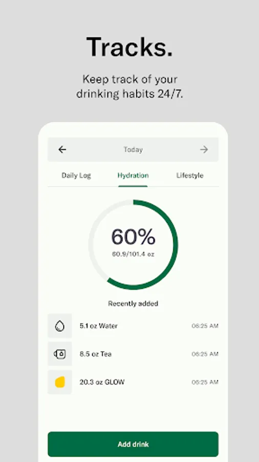 Keep track of your drinking habits 24/7 and reach daily targets.