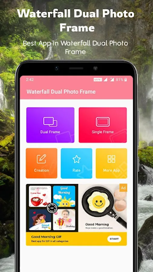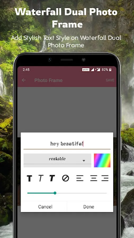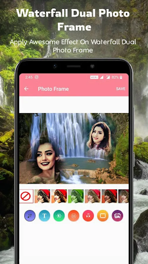 Use this best Waterfall dual photo frame app and look more beautiful and stunning in waterfall dual photo frame, its powerful photo editing app.