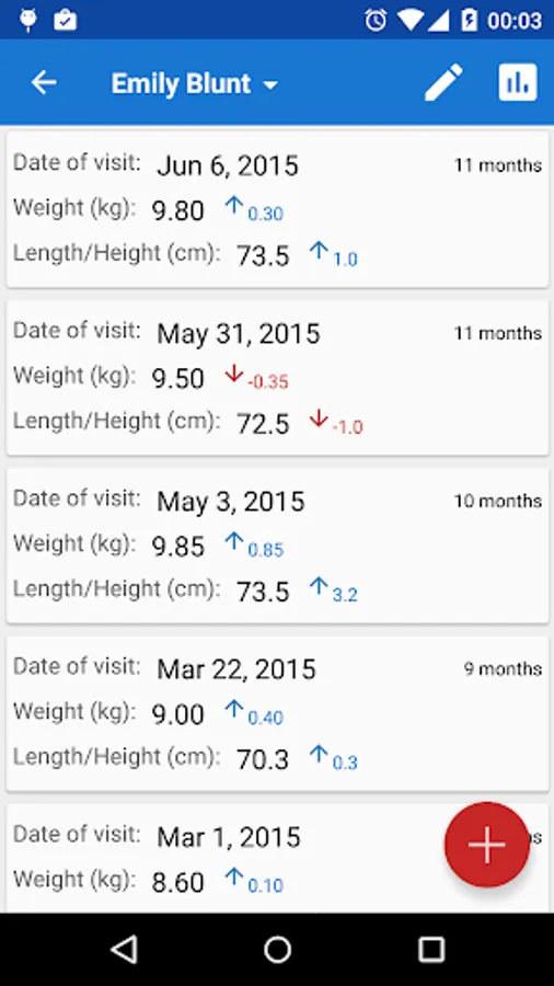 This application enables you to track the growth of your child from 0 to 6 years olds through the official scales, elaborated by the World Health Organization.