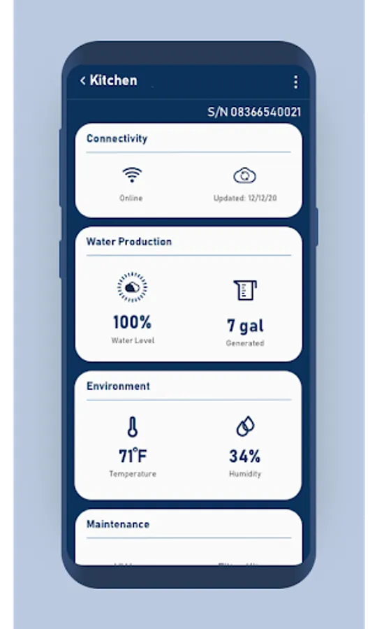 Watergen’s mobile app is your portal for accessing and monitoring the Genny drinking water generator. The app enables you to establish WIFI connectivity and track water level, rate of production, temperature, and humidity, and any maintenance requirements. You can also connect to more than one Genny at any given time, giving you full control over several devices on different floors and departments.