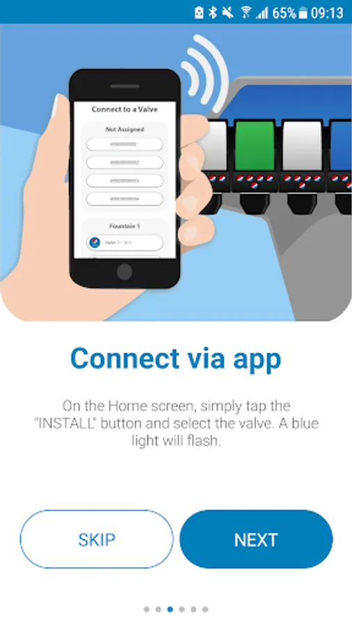 The new e-Valve from Waterline allows PepsiCo technicians & partners to quickly and easily configure, test and diagnose problems using the smartphone through a Bluetooth connection.