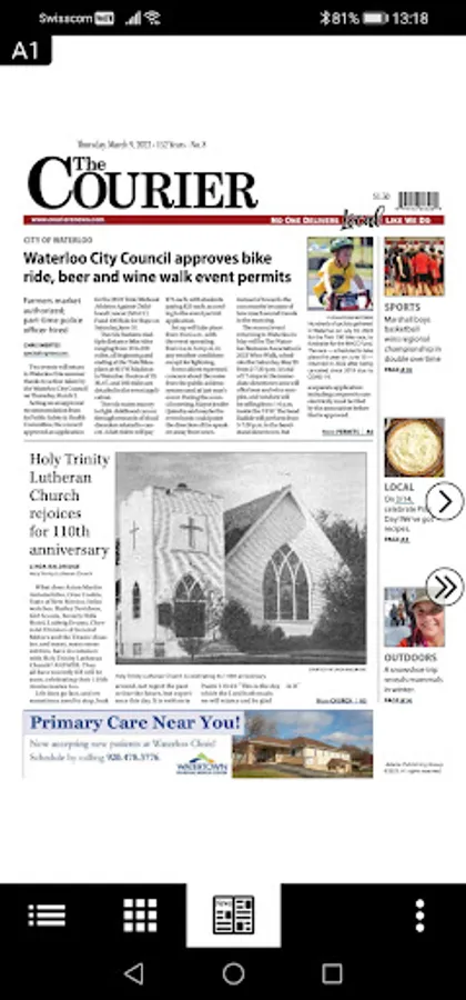 This is a digital replica of the printed Waterloo Courier. This app is part of your all access membership. If you have questions about using the app please contact us at print.subscriptions@ecpc.com or call 608-764-0299, press #1