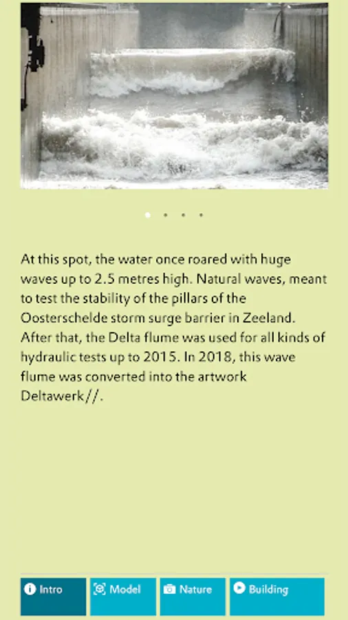 The walk is 3 kilometres long. You start at the entrance building next to the artwork Deltawerk//. At eight models, you watch and listen to the model's story via this app. Follow the white arrows and the numbers in the map and be amazed!