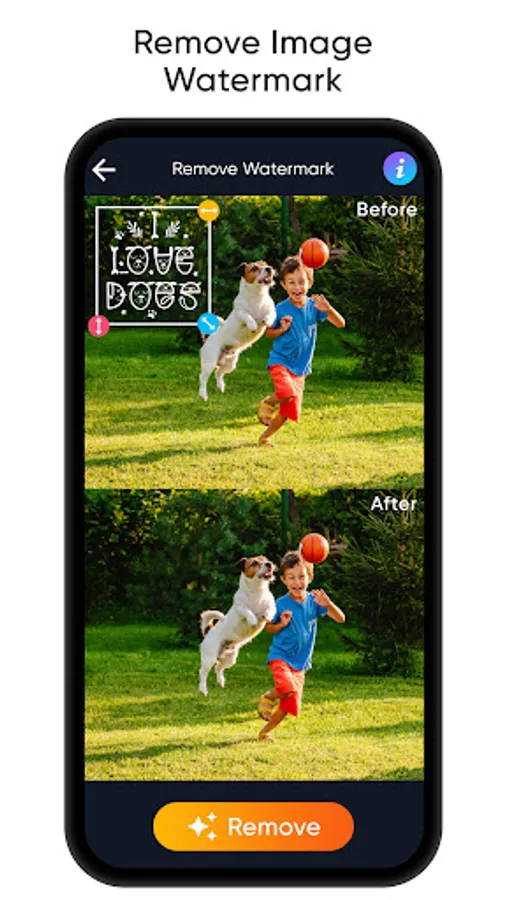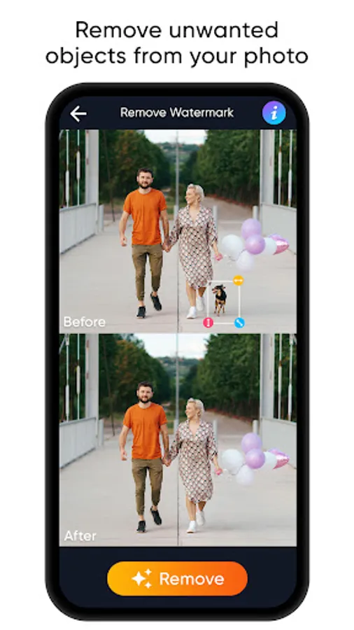 Download the Watermark remover app to remove the watermark or any unwanted object without leaving a trace.