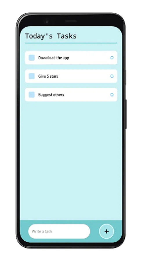 Type the task in the Input and tap the '+' icon to add a task. When task is completed, tap on the task card to remove it.