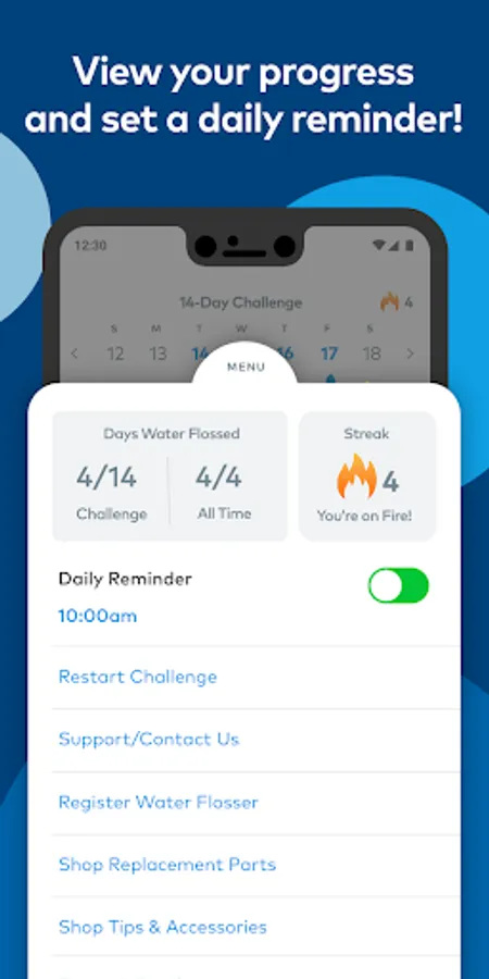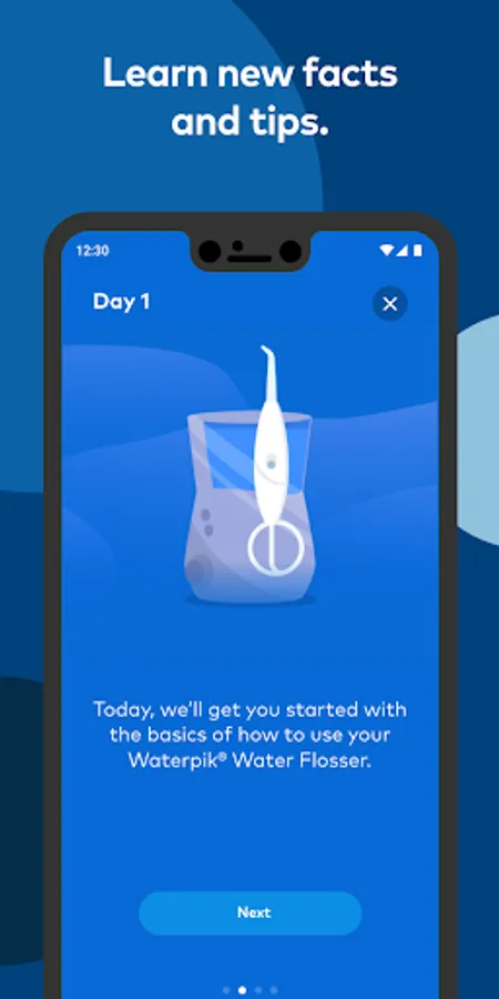 Ready to get started? The Waterpik® water flossing app will help guide you through your first 2 weeks of water flossing so you have the best possible experience. You’ll learn the proper technique, get helpful tips, and receive encouragement to keep you going.