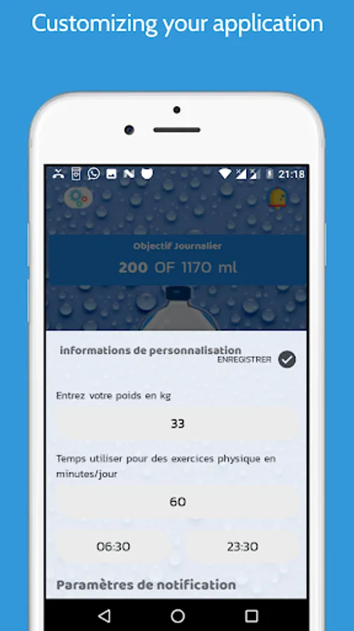 - The Health Water Drink app reminds you according to the frequency that it has set in the settings.