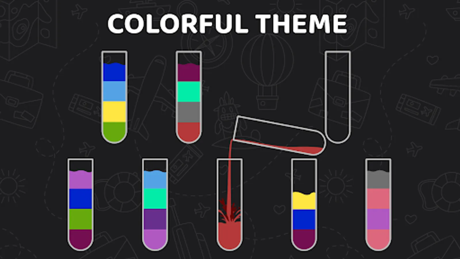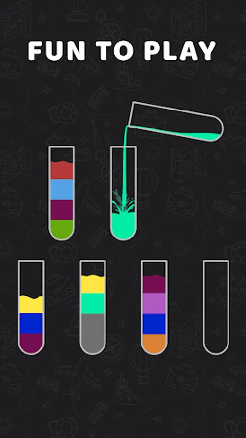 Liquid Sort Water Color Puzzle is a fun and interesting puzzle game! Try to sort the colored water in the glasses until all colors are in the same glass.
