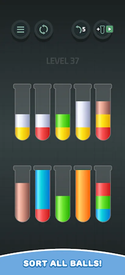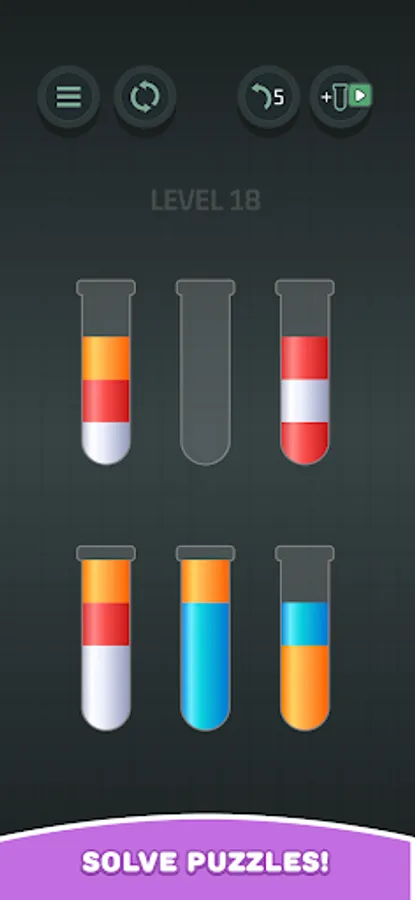 ➢ Follow the only game rule: while sorting liquids by color, you can only place a liquid of the same color on top of the other one.