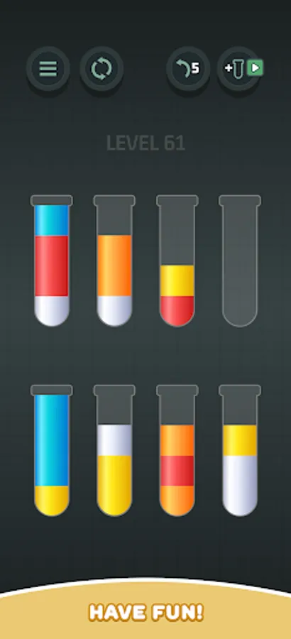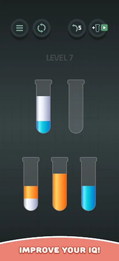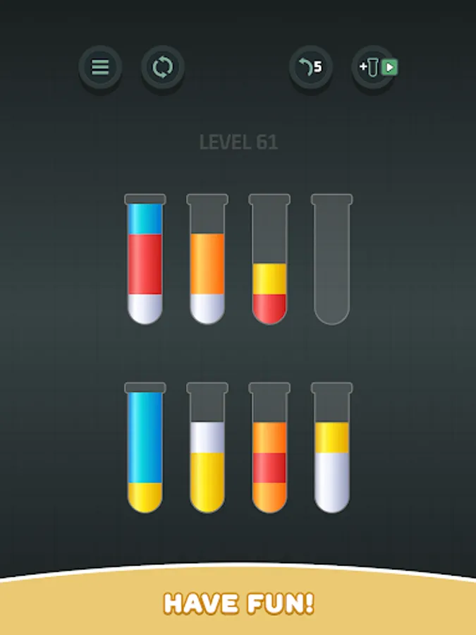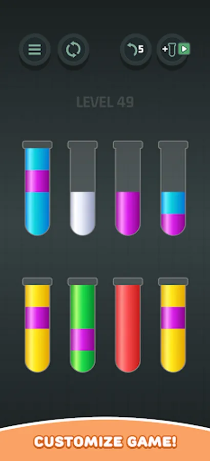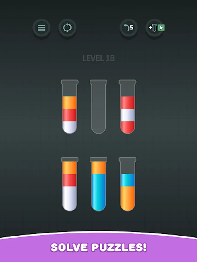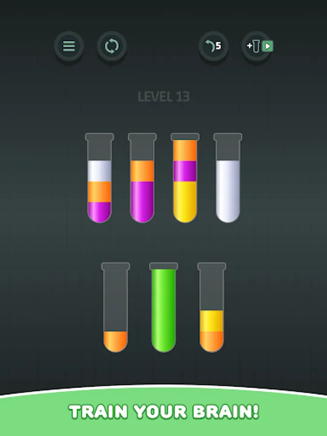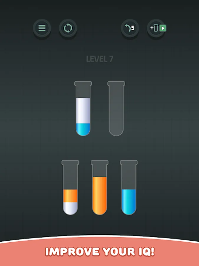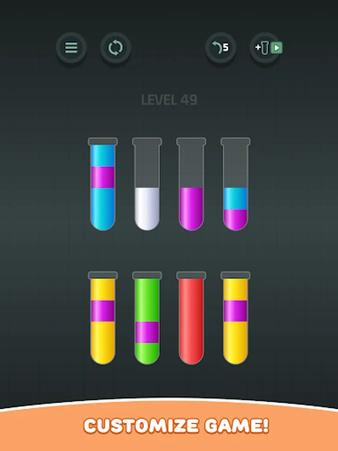 Water Sort Puzzle is one of those amazing puzzle level games that gives your brain some work to do. The main goal of this sort puzzle is to fill the cup (cute-looking glass tubes) sorting the colored liquids until all the same ones are there. This is a true challenge for your mind and logic!