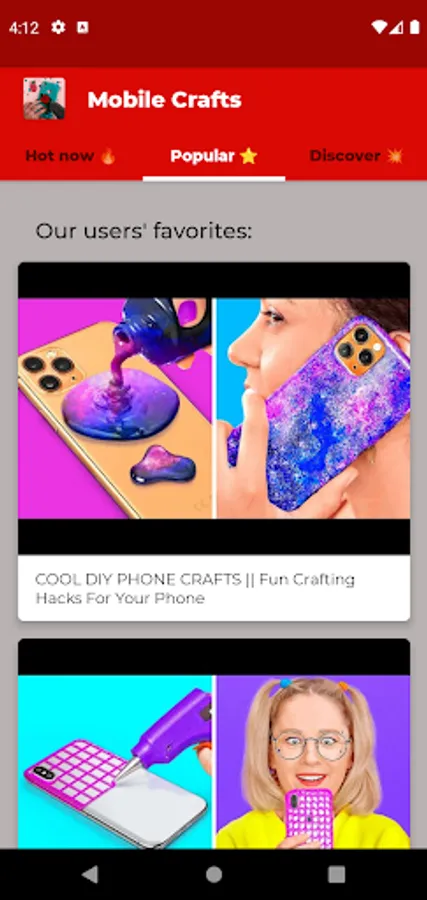 Learn how to make fun crafting hacks for your phone with this android app where you will find DIY mobile crafts ideas like phone notebook organizers, mobile box crafts, and stickers decoration for your case... all kinds of mobile art and its free! If you want to create easy and cheap mobile cover, download it and start doing papercrafts. Save money cleaning yellowness of phone covers or reuse old phone boxes as school supplies ideas. More than 250 videos to learn brilliant phone hacks like decorating cases or smartphone cover restoration. In our 5 minute crafts, you will know DIY ideas to reuse materials. Everything online! Just navigate through our playlist to find phone case decor ideas and other skin mod. Our video tutorials step by step for beginners will help you to build a paper mobile at home.