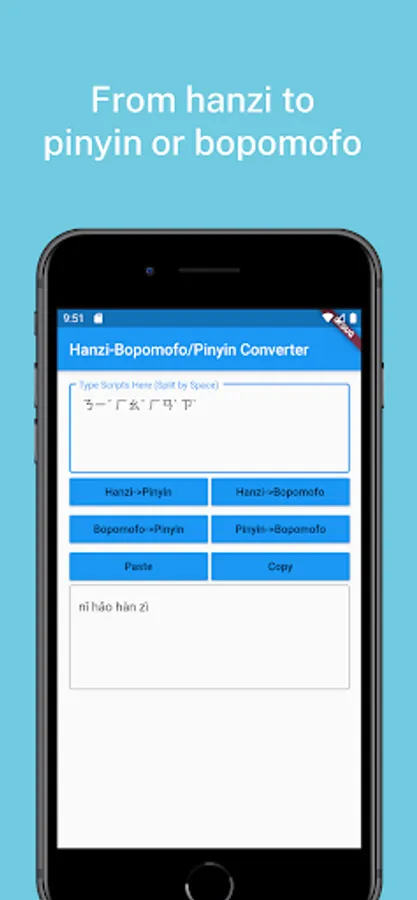 A simple Chinese converter for Hanzi, Pinyin and Bopomofo. Enjoy it and please provide any feedback! If you encounter any problem, please email us first. We will respond ASAP. Thank you very much!
