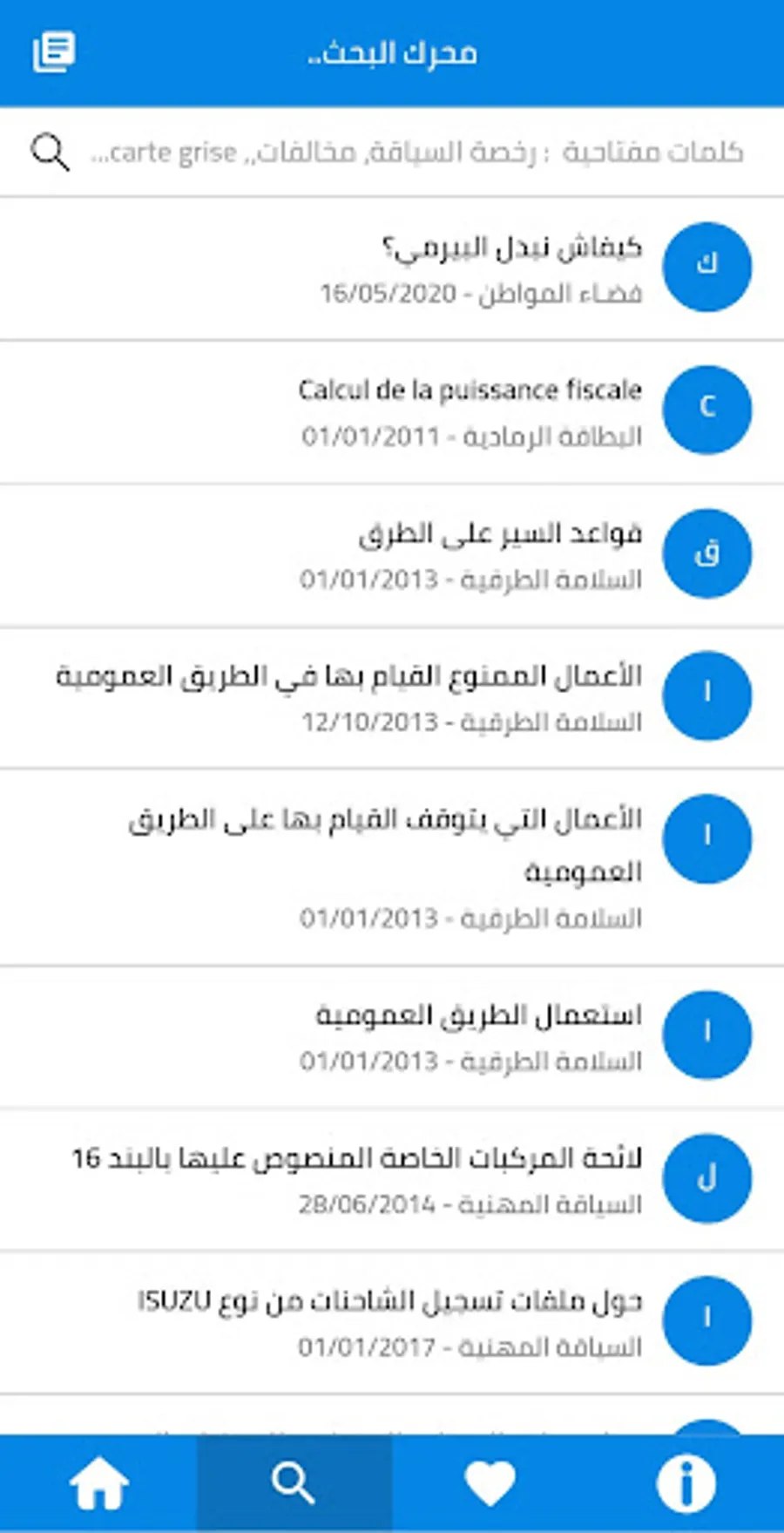 Publishing texts and legal notes to facilitate and simplify administrative procedures related to driving licenses, gray cards, vehicle registration, testing and documentation, motorcycles, technical supervision, driving education institutions, traffic violations and penalties, professional driving and road safety.