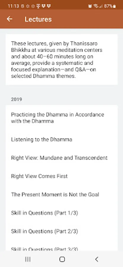 An Android application version for dhammatalks.org. Users can listen to all dhamma talks of Thanissaro Bhikkhu. Below is what user can do with the app: