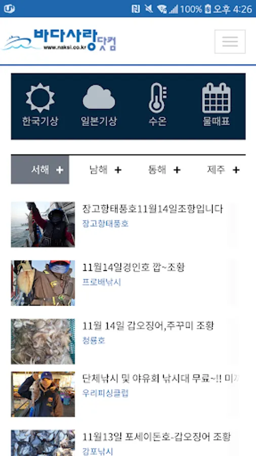 Sea Love opens a sea fishing information site and provides real-time fishing information free of charge.
