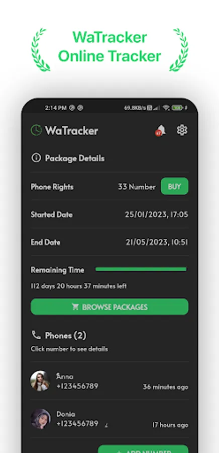 "Track your friends and family's online status with ease using the advanced WhatsApp Online Status Tracker! This powerful app is the ultimate solution for anyone looking to keep track of their contacts' online presence.