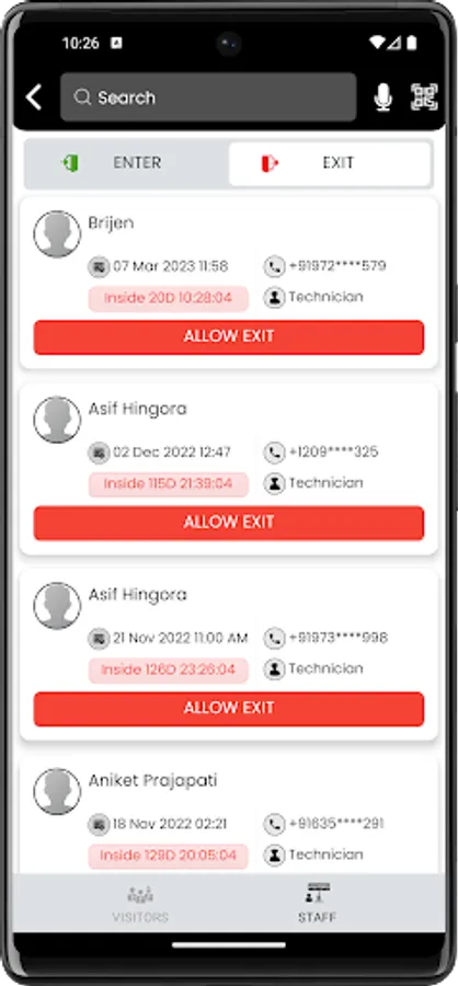 Security Wattapp provides a digitalized way to process Entry & Exit of Resources, Visitors, Cab/Taxis, Delivery or Courier and completely synched with the Society Administrator & Residents User apps. The app has QR Code Scanner functionality, which helps to Scan the passes and Allow Visitors or Event attendees without any hassle and manual entry.