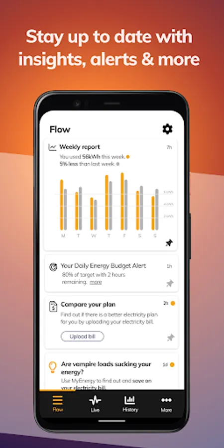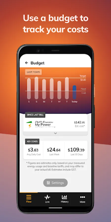 * Use a budget to track your electricity costs in real time, and receive notifications if you get close to your budget target.