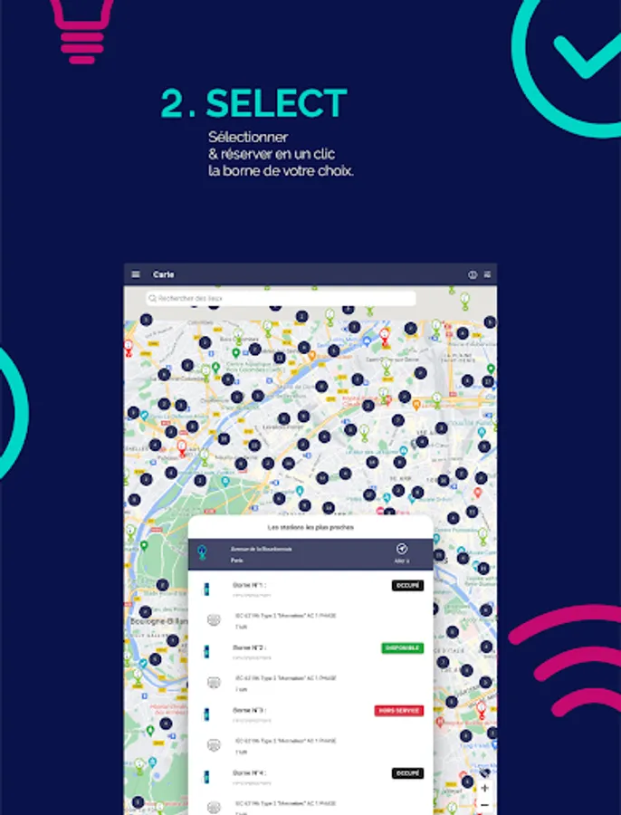 Access the prices of each charging station in 1 click, select the best charging station for you, book then recharge your EV easily.