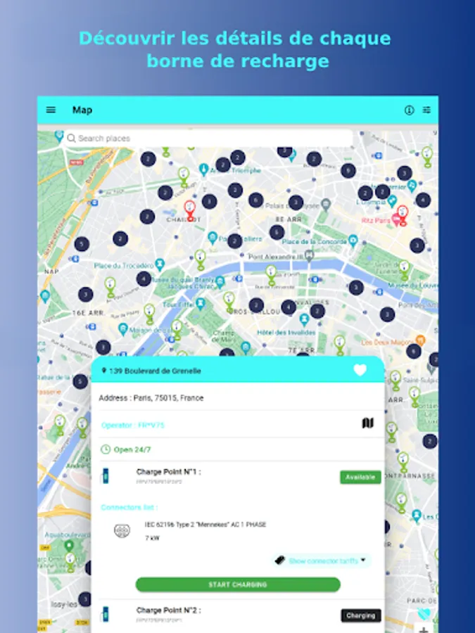 Ev-Zone App is: the fairest prices and 100% access to all terminals in France and Europe.